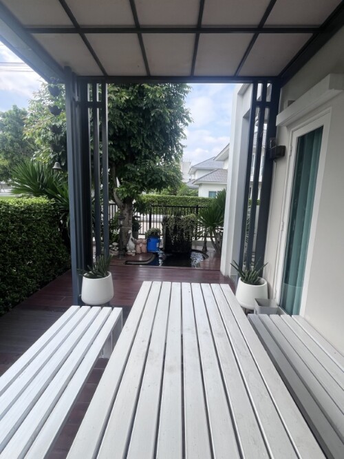 + ด้านข้างตกแต่งทำซุ้มพักผ่อนมีโต๊ะเก้าอี้สนาม + ปูพื้นไม้ระแนง+บ่อปลา+แท่นม่านน้ำตก + จอดรถในบ้านได้ 2 คัน ต่อเติมหลังคาแล้ว + และจอดด้านข้างได้อีก 2 คัน + มีบริการฉีดปลวกทุก 3 เดือนต่อเนื่อง + บรรยากาศร่มรื่น น่าอยู่ เป็นส่วนตัว